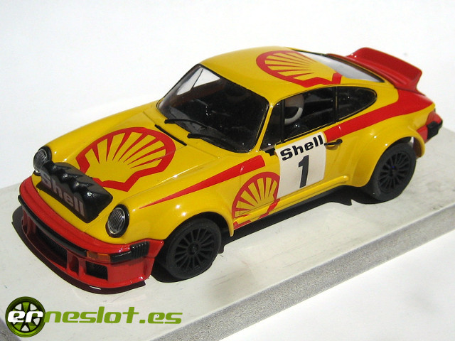 Within these ready to race slot car series had both track models, such as rally, even trucks. Some of them were sold assembled, ready to adjust, oil and ready, and others sold in boxes with the mechanics unassembled and including crowns of different sizes and two types of motor pods, one for long box mabuchi type motors and other for RX type motors, along with the rest of the mechanical components of the car. One of those boxes was that I bought some years ago, with reference 88317 and it included a Porsche 934 in a simple "Shell" livery and various mechanical components unassembled. This is the car that I refer: