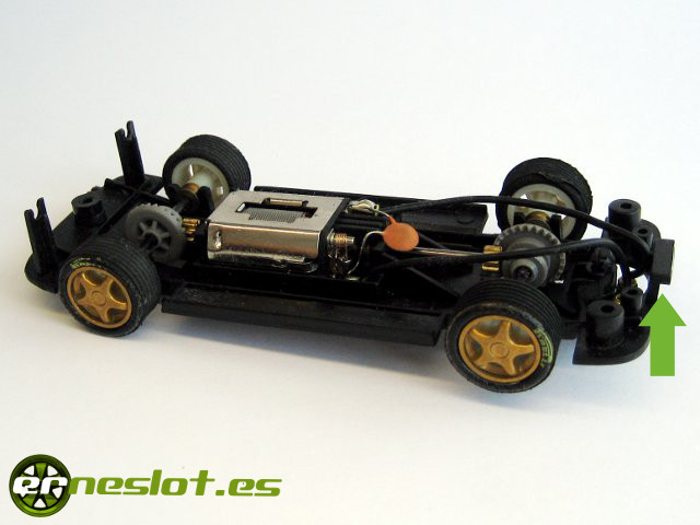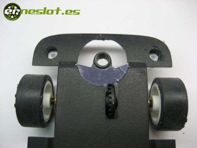 d.) As in the vast majority of cars slot, the width of the tire is excessive. I´ll narrow tires and rims a little bit, to leave them 8 millimeters width. Aesthetically the car makes a lot.