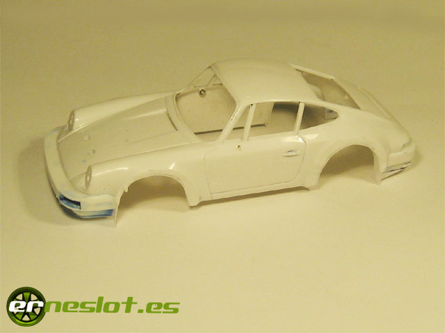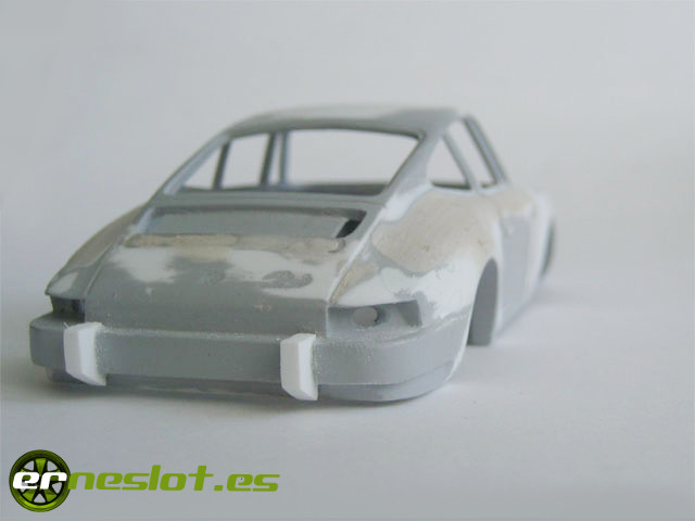 But the primer always shows many failures, and this case wouldn´t be different. Besides the need for sanding some points (bonnet, doors and details of the front wheel arches) the most serious failure was the wrong shape of the rear wheel arches. So I went to stick putty at the top and I reviewed it easy to adjust better that shape.