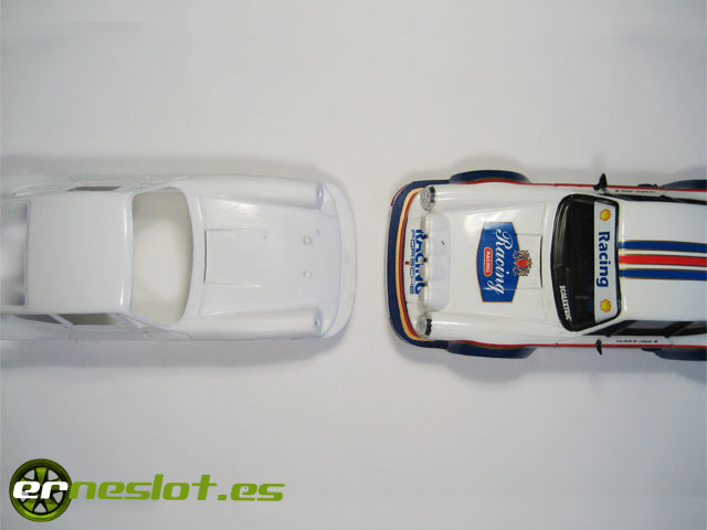 This vehicle is being "reproduced" to 1/32 scale by Ninco, using the mold of the Porsche 930, painted red and without rear wing. The result for my taste was not good, because the differences between the two cars were wide, as wide as the width of the wheel arches (... among other things ...). Except from Ninco, I don´t remember any other reproduction of the car to slot in 1/32 scale so I'm going to make a tribute to this spectacular car, of elegant and fluid shape that has become somewhat obscured by the exaggerated (and captivating) curves of her brother, the turbo model.