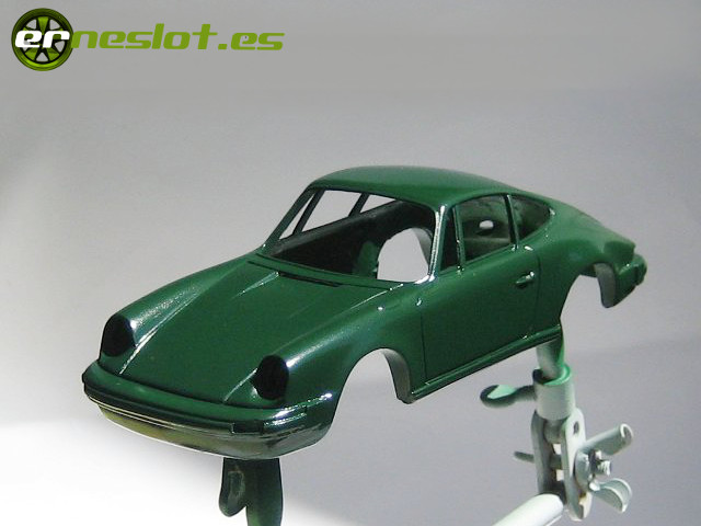 Green Tamiya X-5 color, acrylic and applied with an airbrush, was chosen to paint the car. Here´s with a couple of coats of paint.