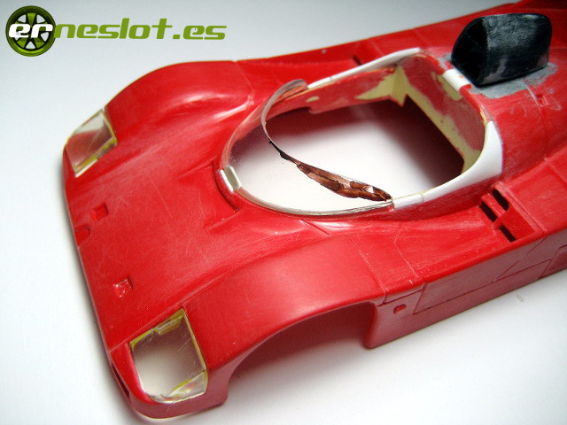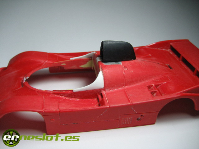 Because this is a car that has been on sale for a few years, the list of decorations we can find in the market for this car is very extensive, but I did not want to make a real car decoration. With the intention to use parts from other works that have been accumulated over time decided to make an interpretation of the model with reference to his brother, the Porsche 936. I´ve always loved the sport prototypes from the 70s with its large raised air intakes, so taking as a starting point my tastes, the body shell and it matched chassis and a air intake from a Spirit Porsche 936 I embarked on the work that I introduce you.
