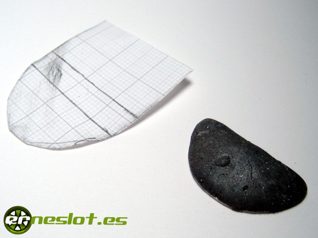The headlamps are extracted from a Scalexctric 911. To place them exactly in its place, pasted a pieces of graph paper as reference of their position. Then, made a hole to attach de headlamp.