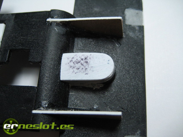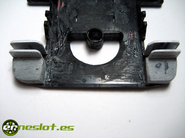 In the rear, I made a piece to hide the screw who attach the chassis and body. With a pieces of plastic and putty gave the piece the appropiate shape.