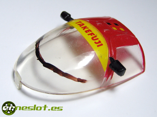Few years ago, a visitor to my page gave me three body shells for scratchbuilding. One of them was the whole body and chassis of the Superslot Porsche 962 (reference C188) in Takefuji livery which participated in the 24 Hours of Le Mans in 1988 with Brian Redman, Axis Elgh and Jean-Pierre Jarier at the whell, who finished in tenth position. Superslot made a quite good reproduction, much more for beain mid-80s slot car, where the technology applied to the slot can not be compared to what is currently. Undoubtedly it is far from the Slot.it reproduction of the same car, but in itself is pretty decent.