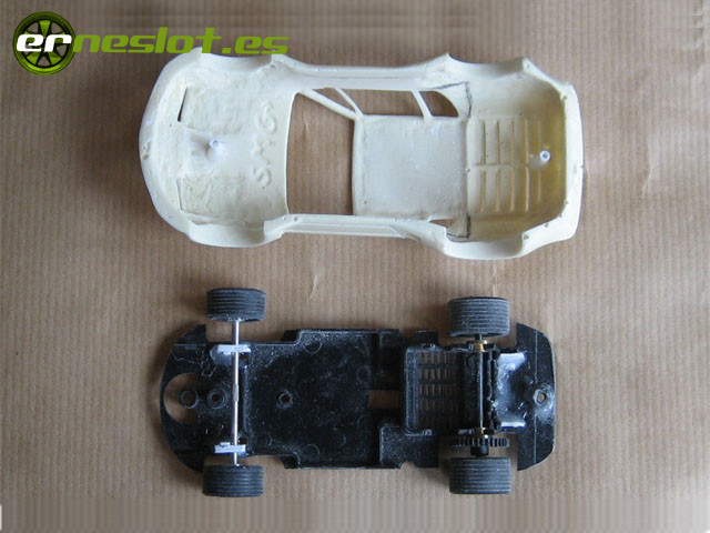 The body that came with the kit had many resin burrs, mainly the bottom, a large number of pores, which while not very big, they forced me to give putty to the entire body to fix those imperfections. So before start anything serious, I sand the body to remove some bugs from the mold and leave it more decent. Then I adapted the chassis.