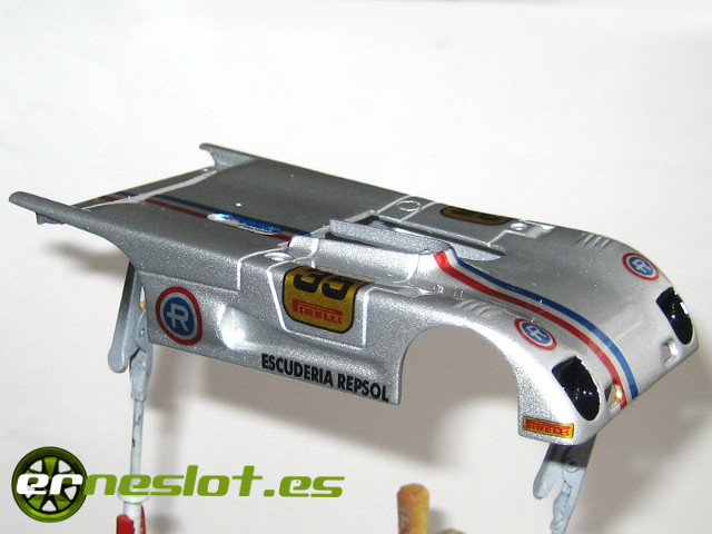 Tras hacer el ajuste del chasis de Avant para la carrocería del Lola T290 de Sloter que podéis ver en este enlace, tenía la carrocería del coche con una capa de imprimación gris en spray de Dupli Color preparada para decorarla. En ese momento estaba liado con la decoración del 908/2 de la escudería Repsol y pensé ¿porqué no hacer dos coches con la misma decoración como si se tratara de dos coches de la misma escudería?
