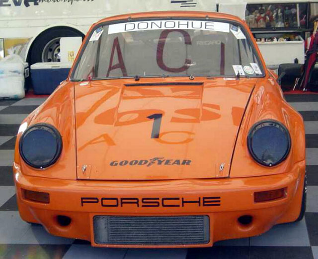 El coche que voy a reproducir a continuación corresponde al chasis 911 460 0090 con motor 684 0031 con el que Mark Donohue corrió durante el año 1974 y con el que consiguió ser el campeón de las IROC aquel año al ganar tres de la cuatro carreras de las que constaba el campeonato. La decisión para hacer este modelo y no otro de aquella competición ha sido simplemente por el color. Esta es una foto del coche corriendo en Daytona en 1974.