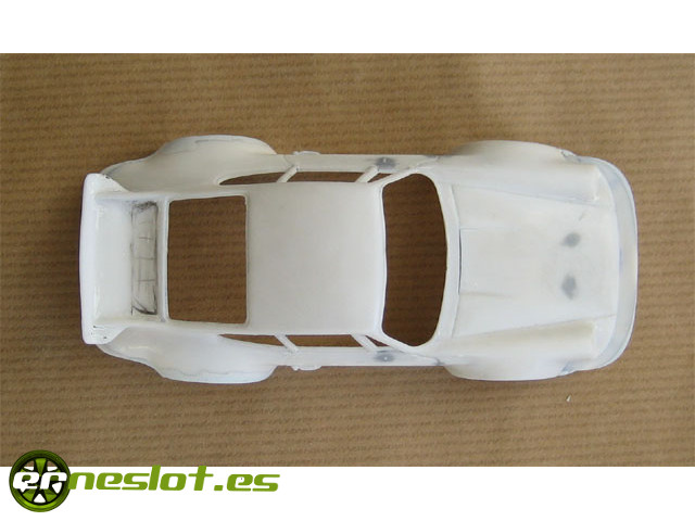 Para el alerón trasero lo primero fue dar un poco de masilla (Nural 41) en la parte del capó trasero y pasarla la lija para darle un ligero abombamiento: